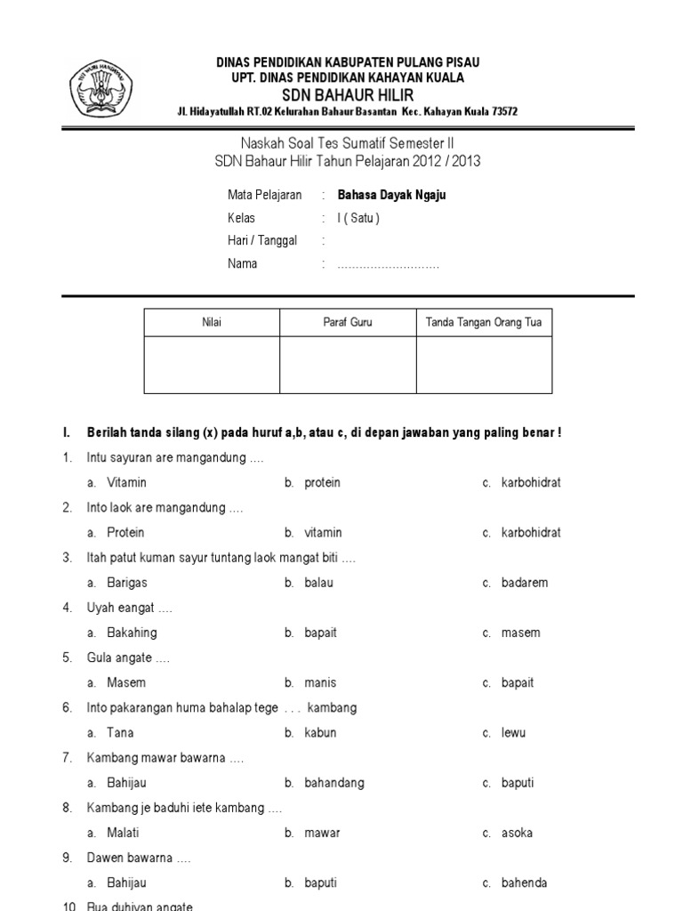 Soal Bahasa Dayak Ngaju Kelas 3 - Soal Bahasa Dayak Ngaju Kelas 2 Sd - BangSoal : There are lots of books on the table.. Soal bahasa indonesia kelas 5. Pepatah petitih dalam bahasa dayak ngaju pdf. The following text is for. Makalah materi soal seni budaya kelas 3 diterangkan mulai dari pelajaran sd, smp, atau sma plus min, mts, ma dan smk lengkap dengan contoh soal bahan untuk memperbaiki daun kering adalah … a. Berikut bospedia memberikan soal uas bahasa indonesia kelas 10 sma/ma.